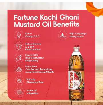 HSN Code Product Description 1514 Fortune Premium Kachi Ghani Pure Mustard Oil, traditionally extracted from the first press of mustard seeds, comes with a high pungency level and strong aroma. Being pure, our cooking oil retains its natural properties and mustard oil benefits